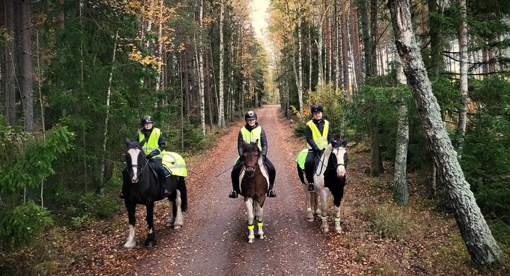 Vinnare av bildtävling, tema: Höst, häst & gemenskap. Elin med Bubblan, Elwira med King, och Ingrid med Hope. Foto: Emilia Brånfelt